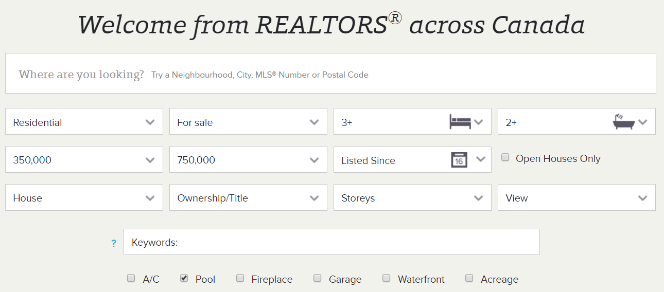 Realtor.ca is the public-facing site for accessing MLS listings across the country. While not all listings will appear here, it is a great place to start when you're moving to a new neighborhood to get a sense of the types and prices of homes in the area. Realtor.ca Listings are often delayed 1-2 days compared to Collaborate or your Realtor's internal search tools. What Realtor.ca lacks in functionality, it makes up for in simplicity. The site is very easy to use and the information is highly accessible. It is also the only search tool which has the ability to search the whole country.